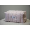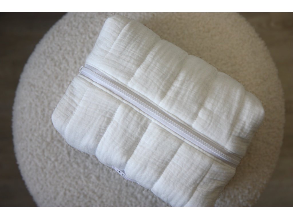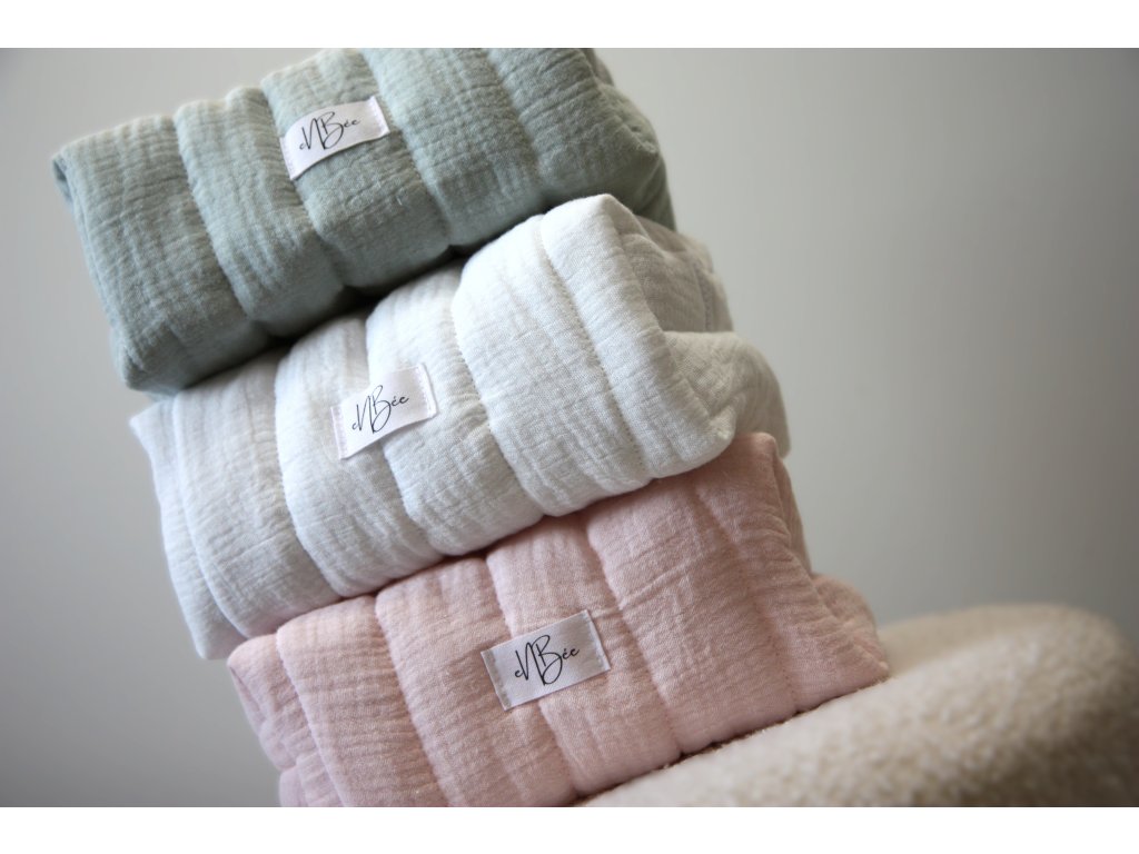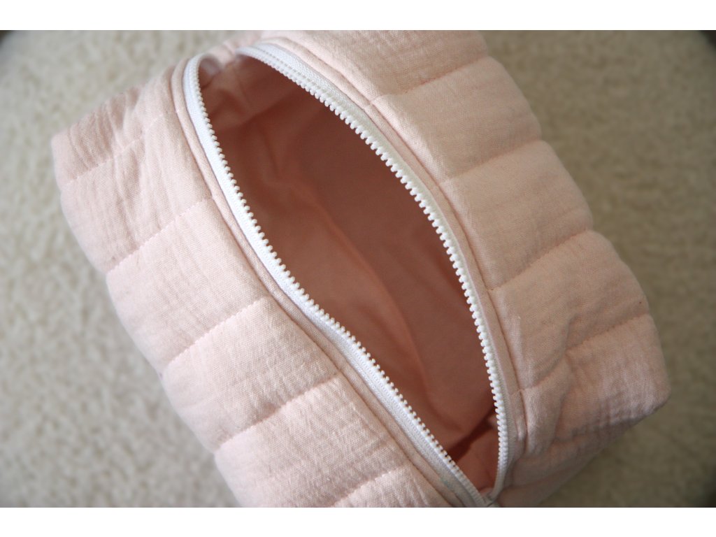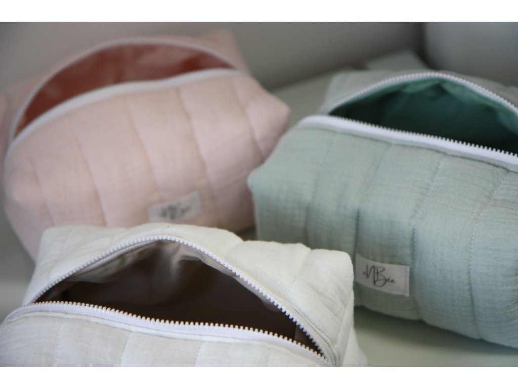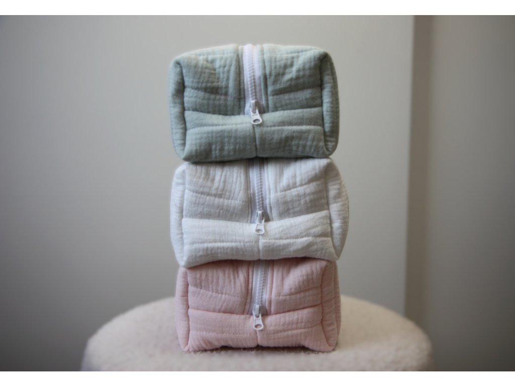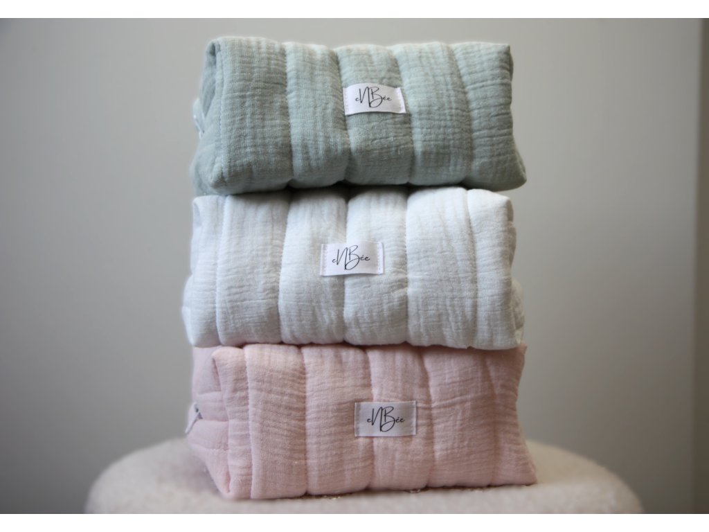 Na dovolenou, do kabelky, nebo jen tak do koupelny – tyhle kosmetické tašky jsou ideální pro všechny, kteří mají rádi věci krásné a praktické zároveň. Je pečlivě ušitá ze 100% bavlněné látky (mušelín) a díky měkkému polstrování krásně drží tvar a přitom zůstává příjemně poddajná. A vybrat si můžete ze tří barev - růžova, mentolová a bílá.